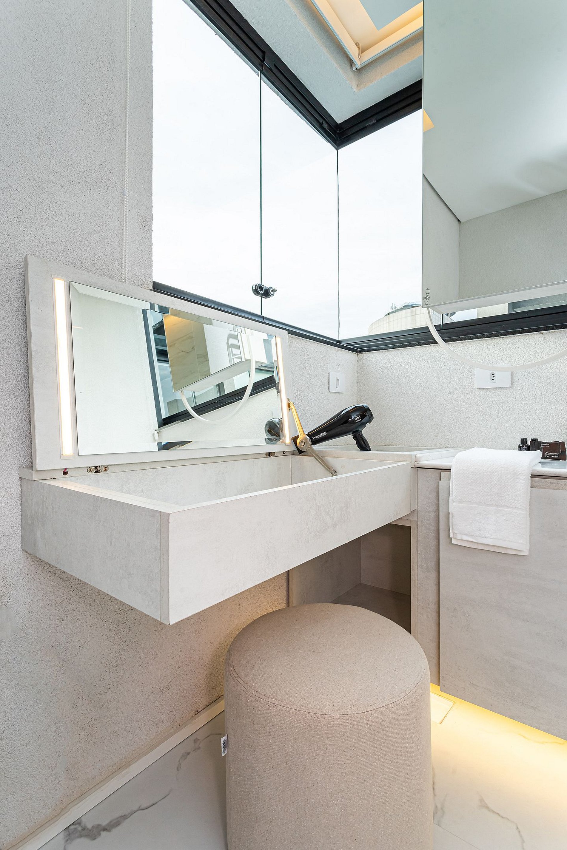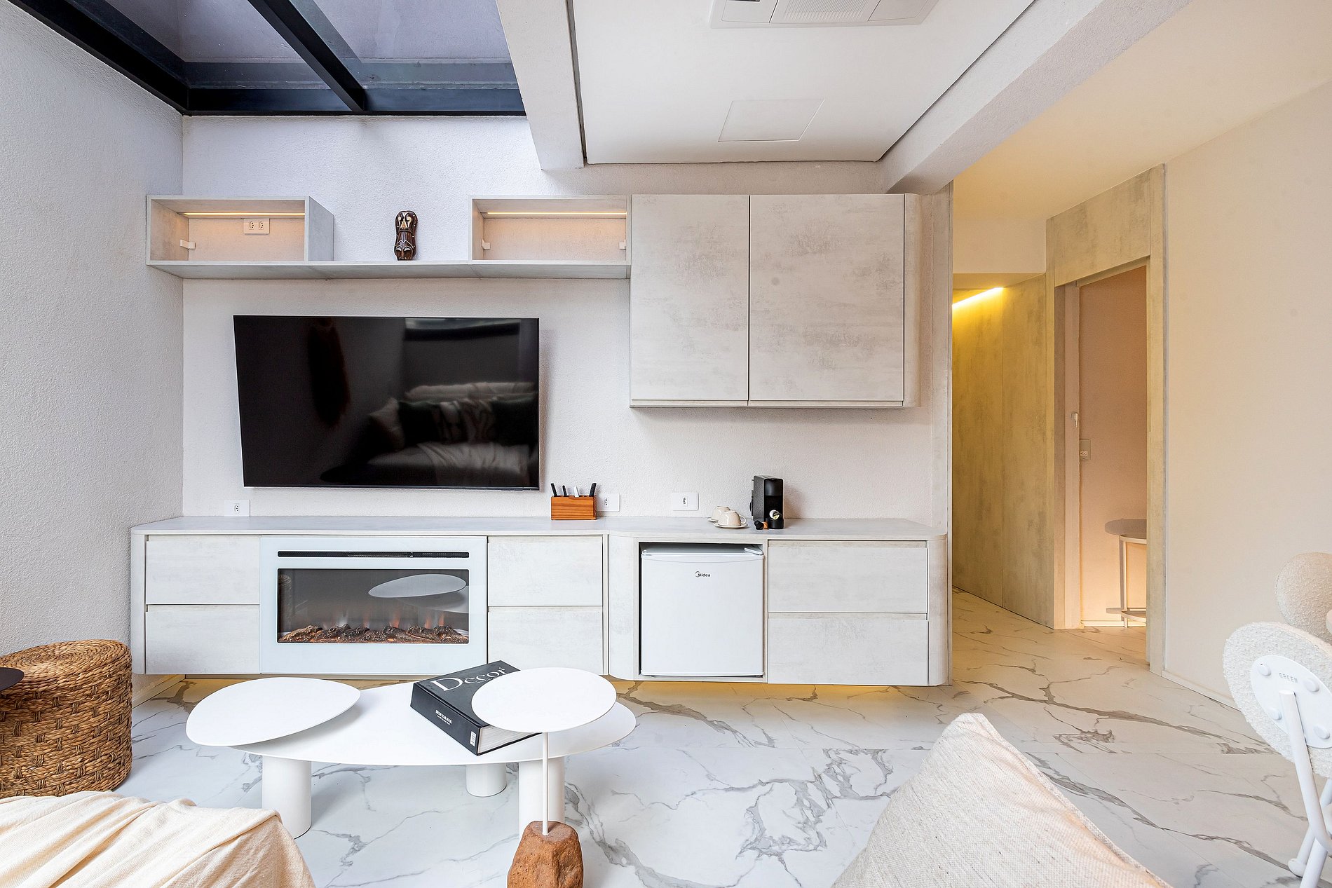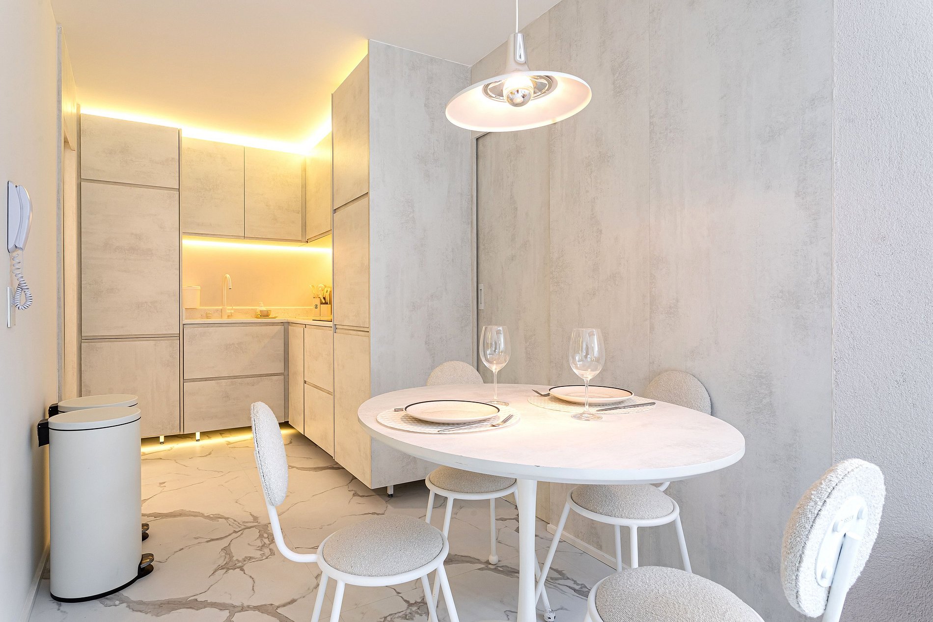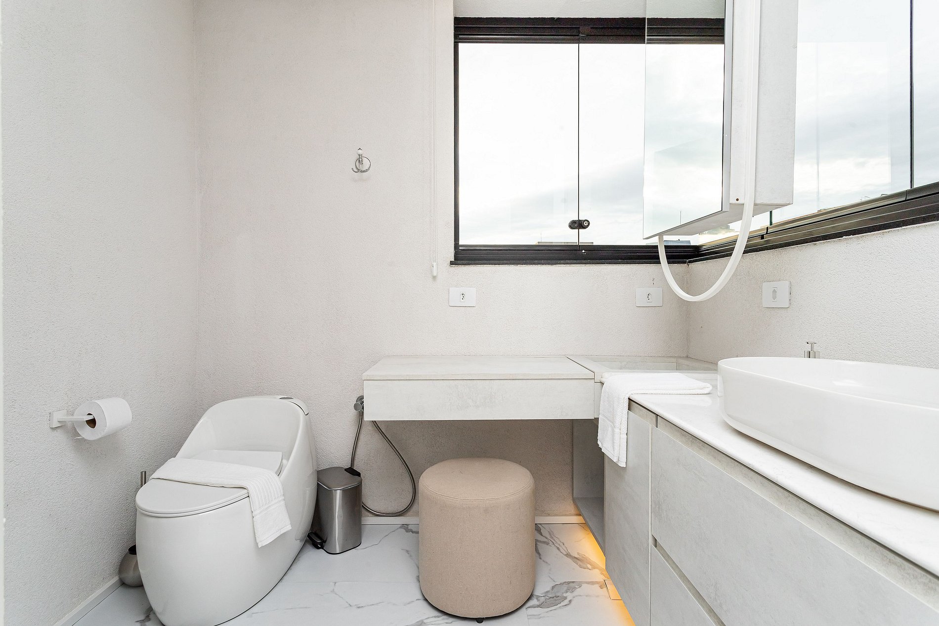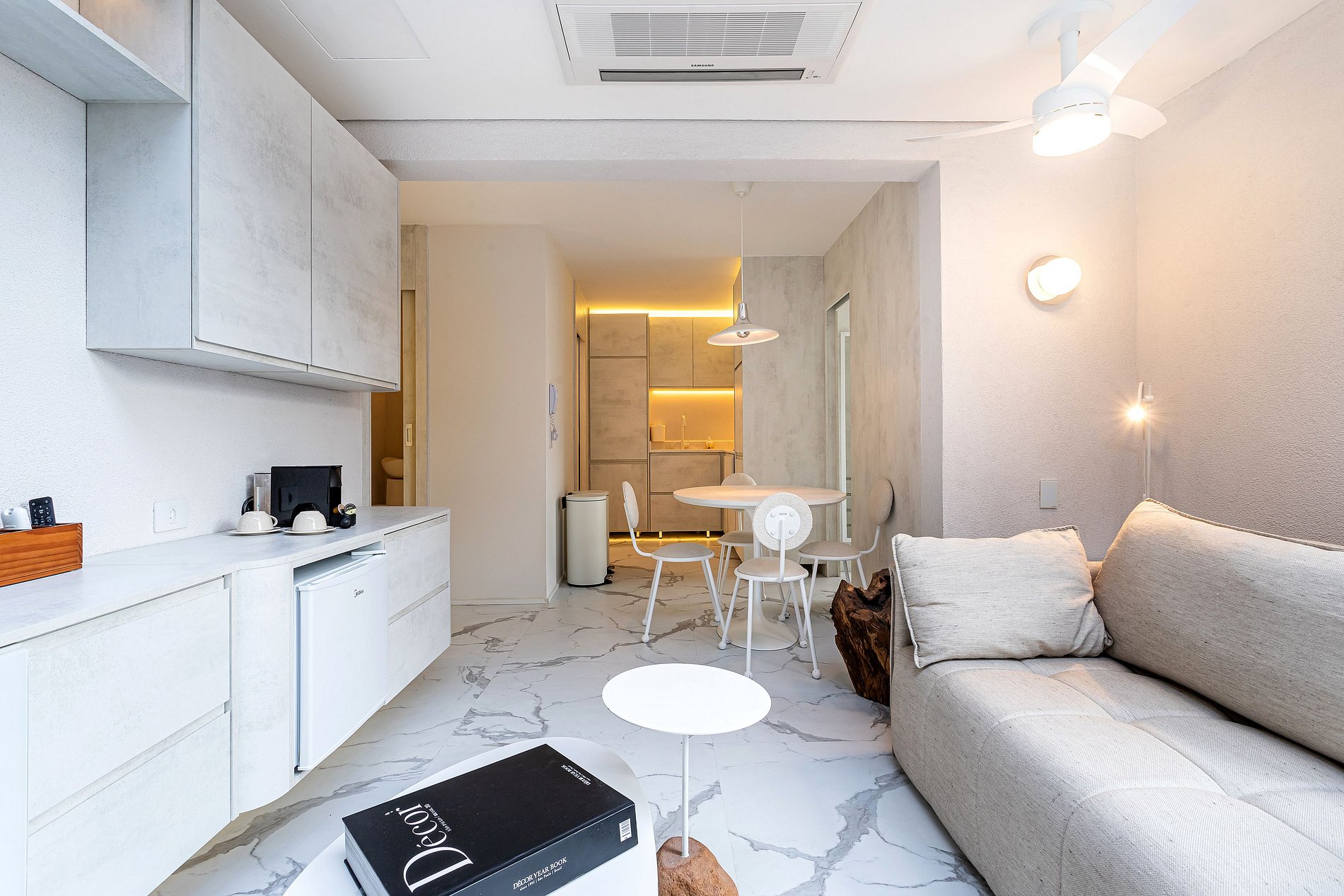 Lindo apartamento com Design sofisticado e luminoso, minimalista e contemporâneo, dominado por uma paleta de cores claras e neutras.
