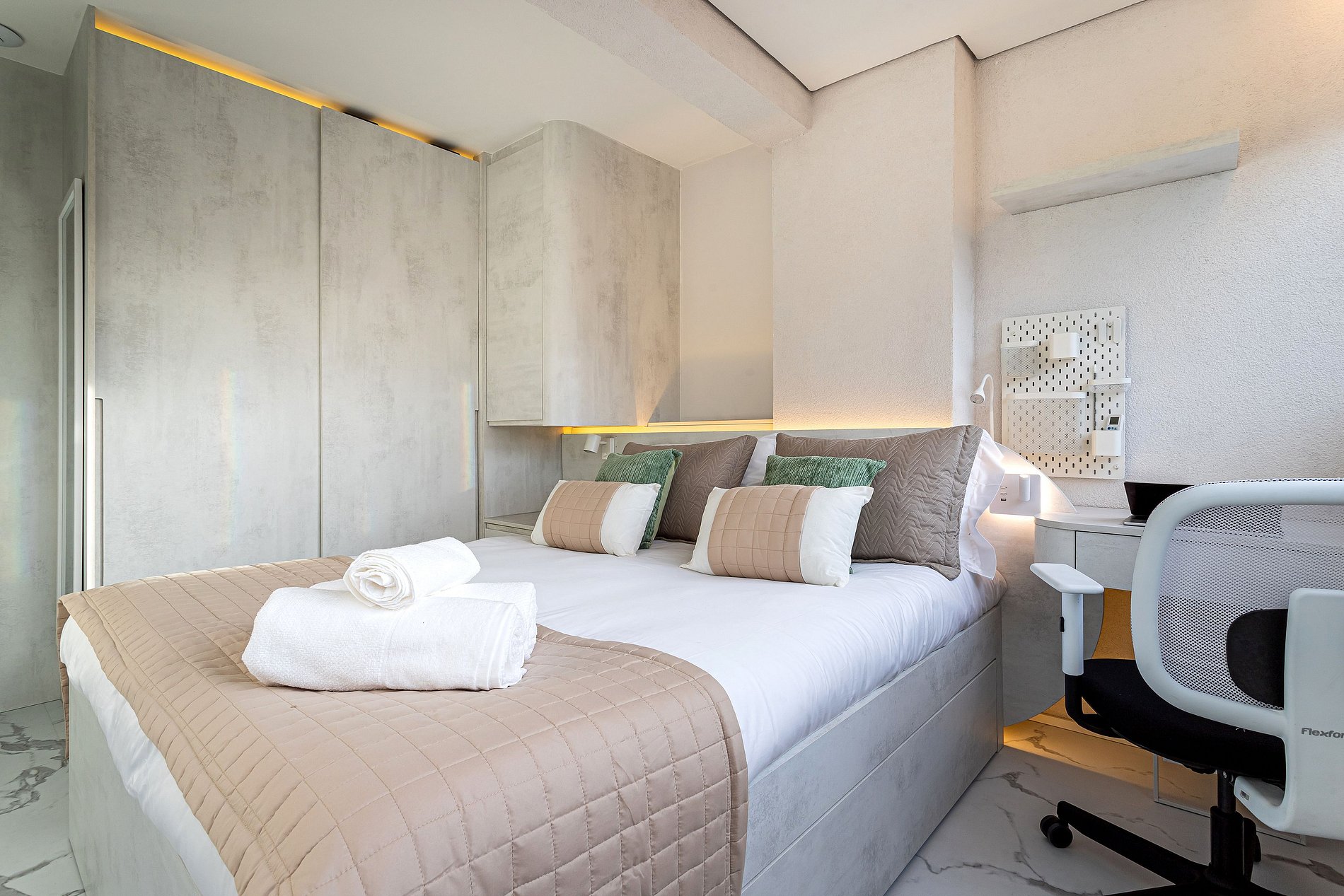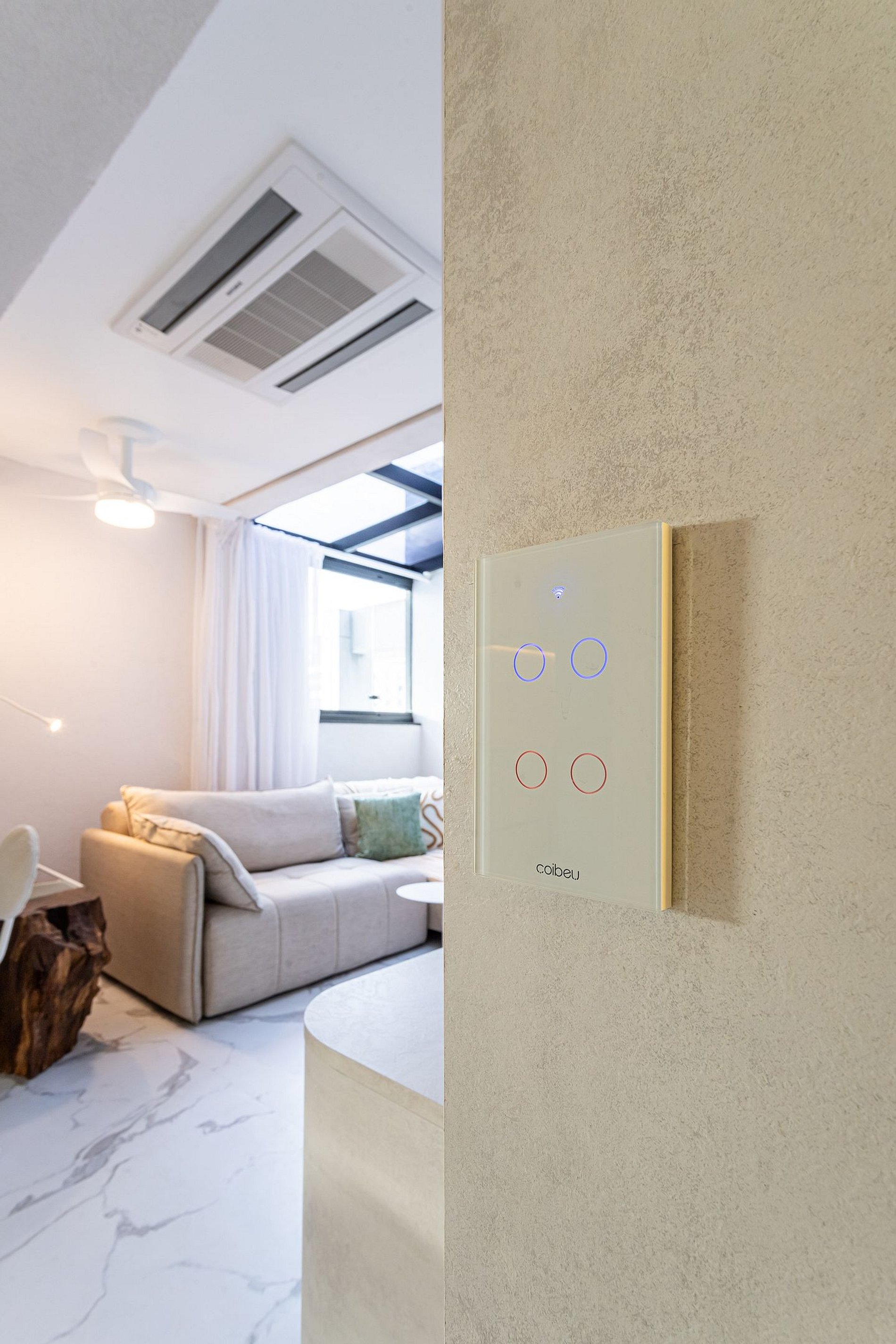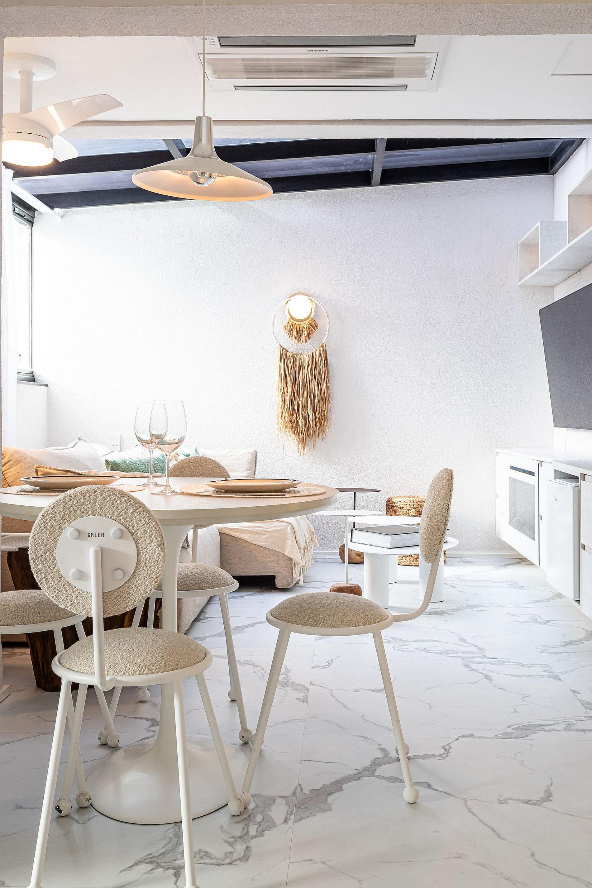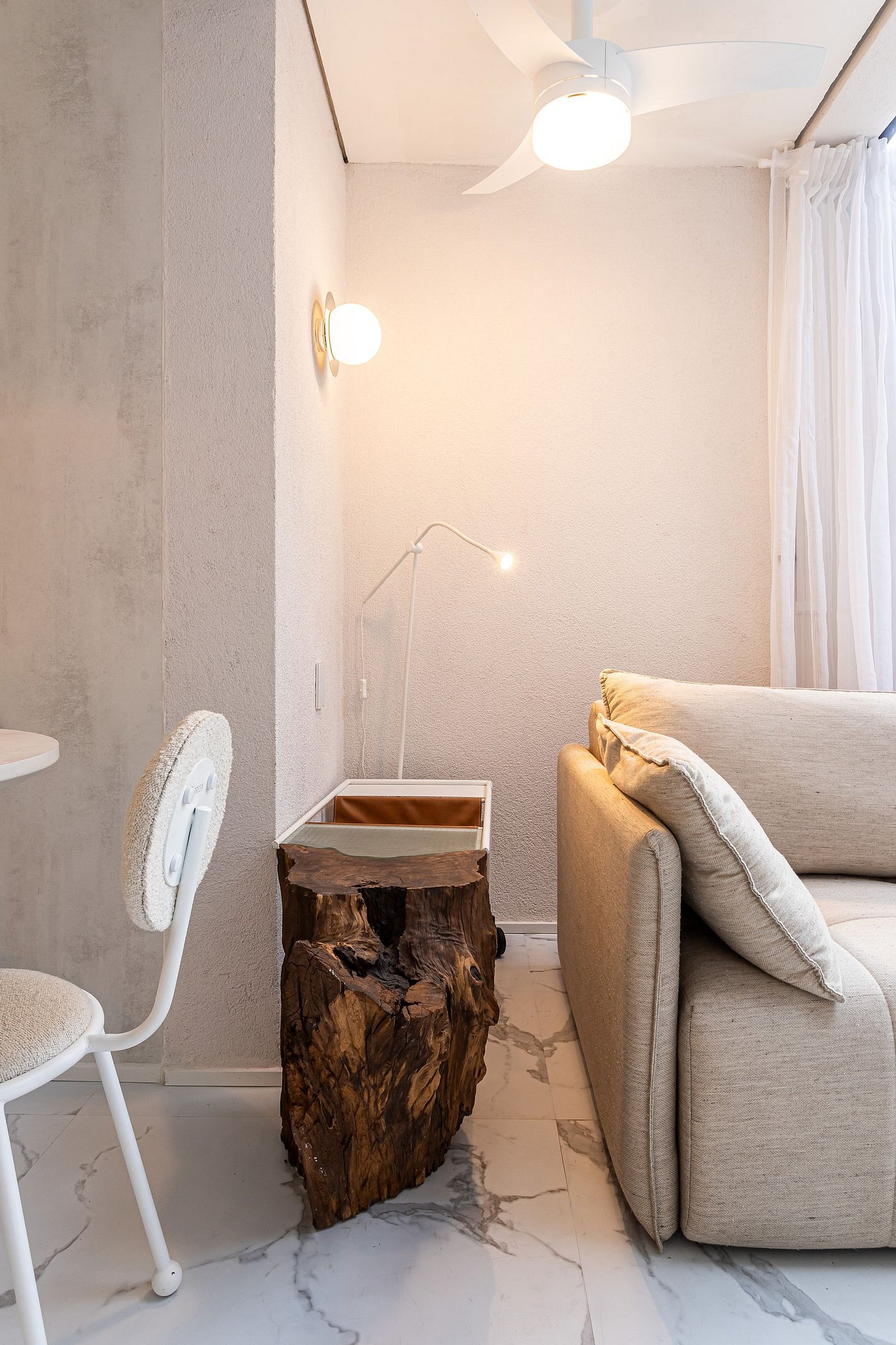 Lindo apartamento com Design sofisticado e luminoso, minimalista e contemporâneo, dominado por uma paleta de cores claras e neutras.