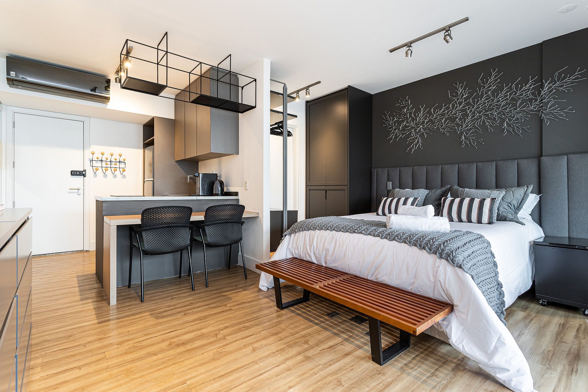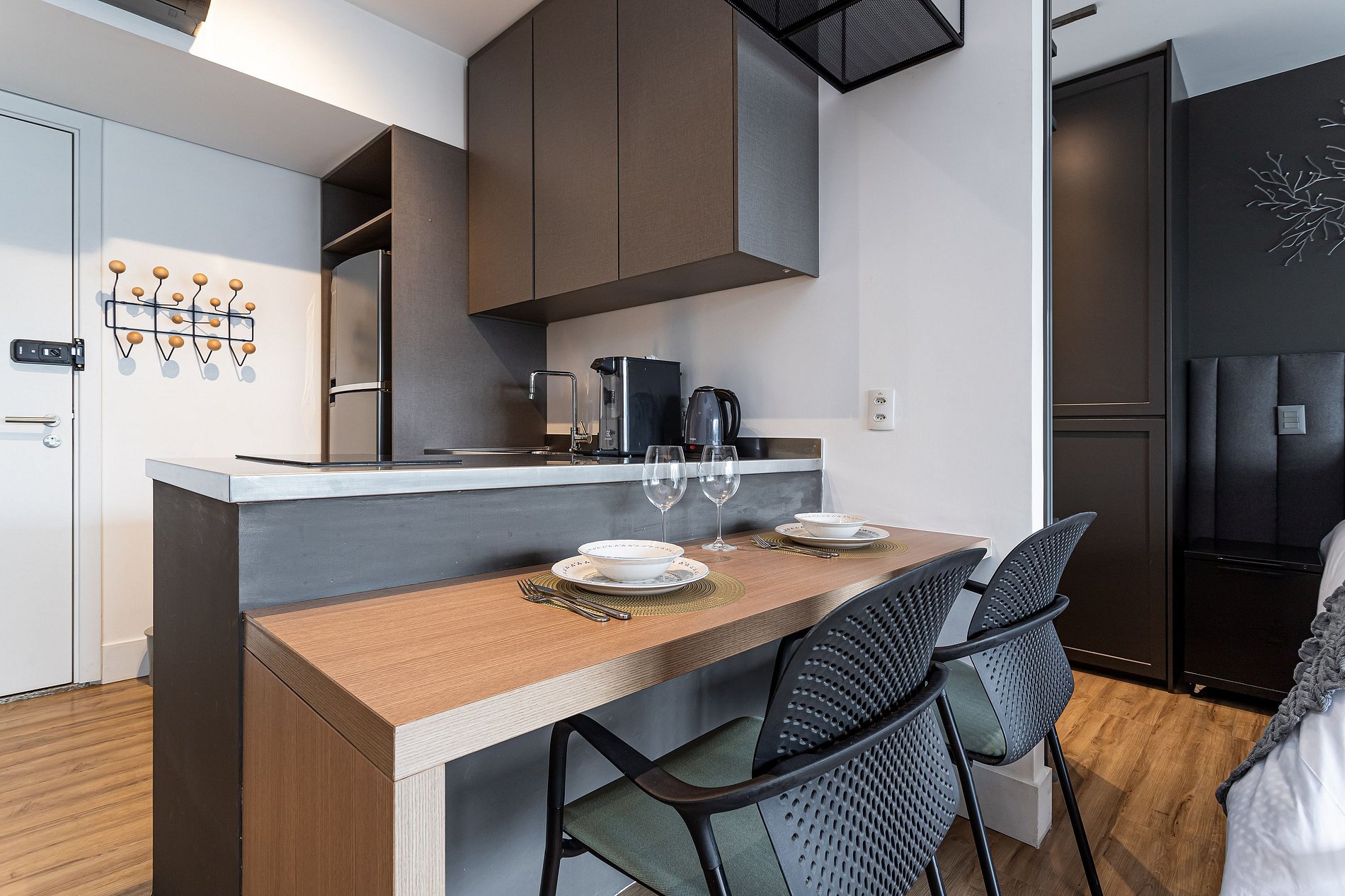 Studio no 5º andar, localizado no coração do Itaim Bibi, entre Av Faria Lima e JK, uma das regiões mais nobres de SP.