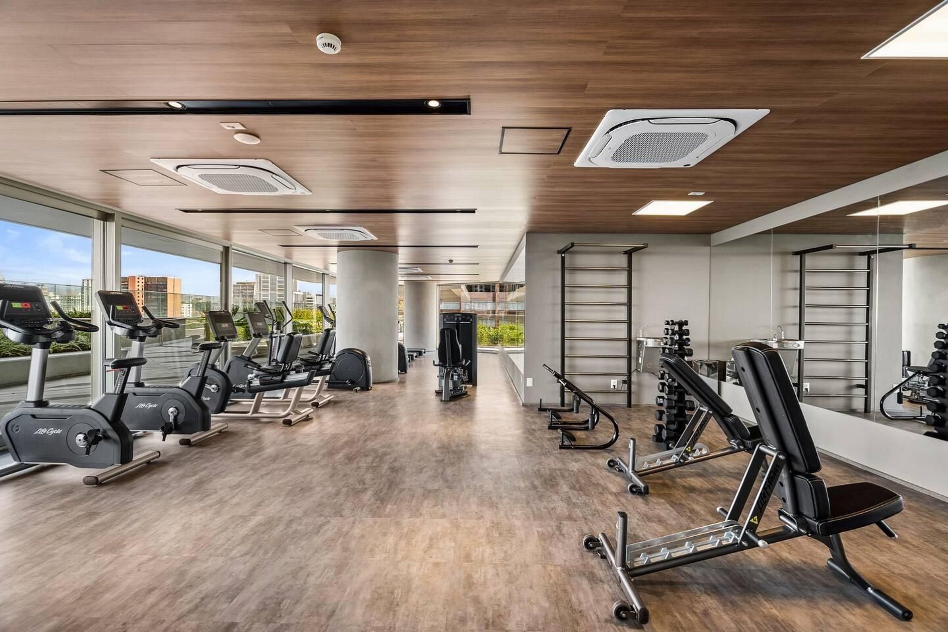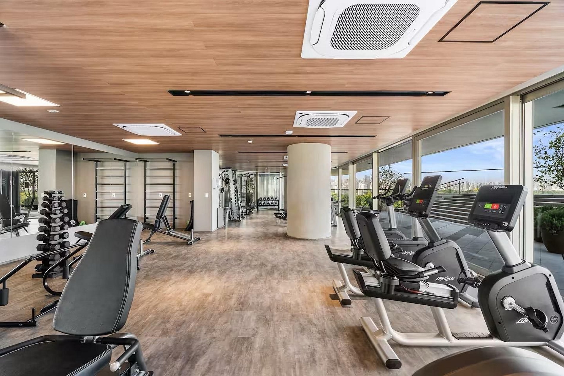 Área comum conta com piscina ao ar livre, academia, co-living e sauna.